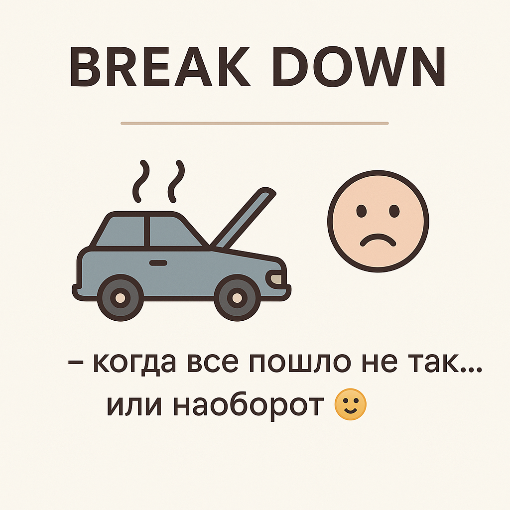 Если вы всерьёз решили выучить английский, то без фразовых глаголов вам, увы, не обойтись. Это как соль и перец в блюде — вроде мелочь, а без них вкус совсем не тот. Особенно, когда речь идёт о таких многозначных и "живых" глаголах, как break down. Сегодня мы как раз о нём. Этот глагол — настоящая звезда среди фразовых: может и сломаться, и разложиться, и даже расплакаться… В общем, давайте по порядку 😉 Это, пожалуй, самое популярное и “больное” значение. My car broke down on the way to work.