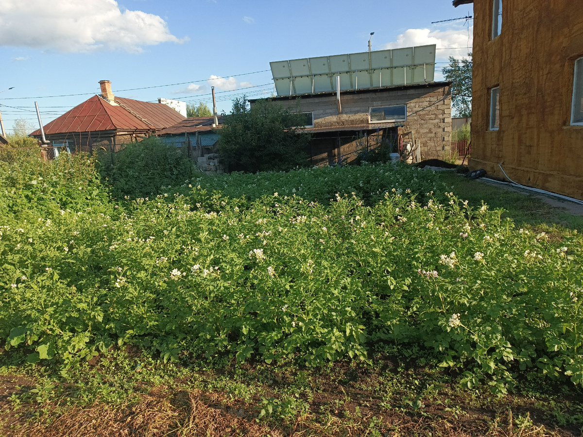 Интересный у нас город - Чита, и Забайкальский край тоже. Такой непредсказуемый, необычный. Иногда создается ощущение, что я с детьми и мамой живу в разных городах. Если у нас светит солнышко, то у мамы гремит гром, а то и льет дождик. Дачники, те вообще живут в своей климатической зоне. Вчера разговариваю с подругой по телефону, она жалуется, что картошку огрести не может, сыро, каждый день идет дождь. Какой дождь? Я каждый день грядки поливаю, а сегодня и картошку хотела промочить. Но ночью и у нас прошел дождь, хороший, все полил. Картошечка сразу приободрилась. Она уже вся цветет, но вот картошинки размером с горошинки, совсем не наливаются. Даже купленная семенная ранняя не наливается. Виню в этом потоп. Вода то ушла, но земля стала каменная. Кто знает, как ее порыхлить и корни не повредить? Пока земля влажная, продрала траву в цветах. Теперь опять видно мою вертикальную клумбу. Петунии цветут, но пышности все таки не хватает. Пеларгонии цветут не плохо, а вот листву наращивают