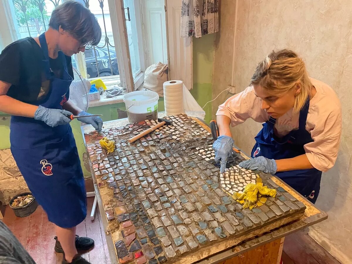 В середине июля мозаичное панно из ресторана «Балканы» в Ростове забрали на реставрацию. Корреспондент DonDay побывал в мастерской и посмотрел, как проходят работы. В советское время большое мозаичное панно украшало вход в культовый советский ресторан «Балканы». Ресторан назван в честь стран-союзников Балканского полуострова, поэтому при входе в заведение посетители видели балканскую народность: в центре изображения – пара в национальных костюмах на фоне природы, где стоят яблони. Необыкновенно красивую стену посетители увидели еще в 1967 году. С тех прошло много лет. Здание начало разрушаться, а вместе с ним – и сама мозаика. Градозащитники «Том Сойер Феста» и другие волонтеры предложили панно отреставрировать. По договоренности с владельцами помещения панно аккуратно демонтировали и отправили в мастерскую реставратора Марины Яблонской. Объем работ оказался немаленьким - 20 квадратных метров. В длину панно составляет более 6 метров, а в высоту – 3,2 метра. Сами бетонные плиты, на кото