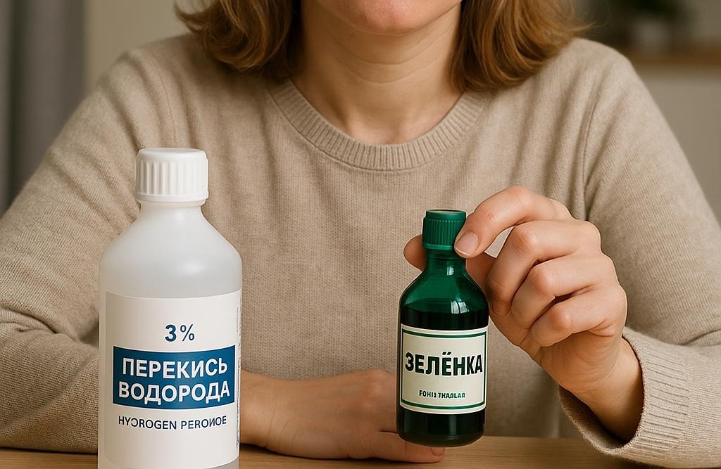 И тут подружка Галя рассказала мне секрет, который она узнала от своей свекрови: оказывается, обычная перекись водорода в сочетании с нашатырным спиртом творит настоящие чудеса с пятнами от зеленки!