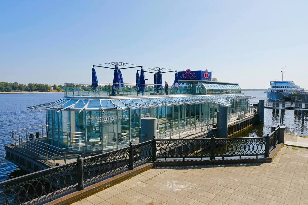 На месте печально известного дебаркадера. Еще в 2018 году на Волжской набережной собирались смонтировать дебаркадер в мавританском стиле, после протестов общественности его убрали. Еще через год ресторан затонул в Волге. Минувшей осенью стало известно о новой попытке установить причал от компании СК «Меркурий». Правда, в 2024 году причал так и не появился, потому что против его размещения была природоохранная прокуратура, подавшая иск в арбитражный суд. В июле арбитраж отказал правоохранителям в иске, и вот сегодня стеклянный ресторан появился на Волжской набережной. «Современный причал включает в себя зал ожидания и ресторан с панорамным остеклением на 180 посадочных мест, которые размещены на двух палубах. Он откроется через несколько недель и будет специализироваться на традиционной русской кухне с использованием ярославских продуктов. К причалу смогут швартоваться как круизные, так и прогулочные суда»,— заявил в телеграм-канале губернатор Михаил Евраев. В дальнейшем на объекте пла