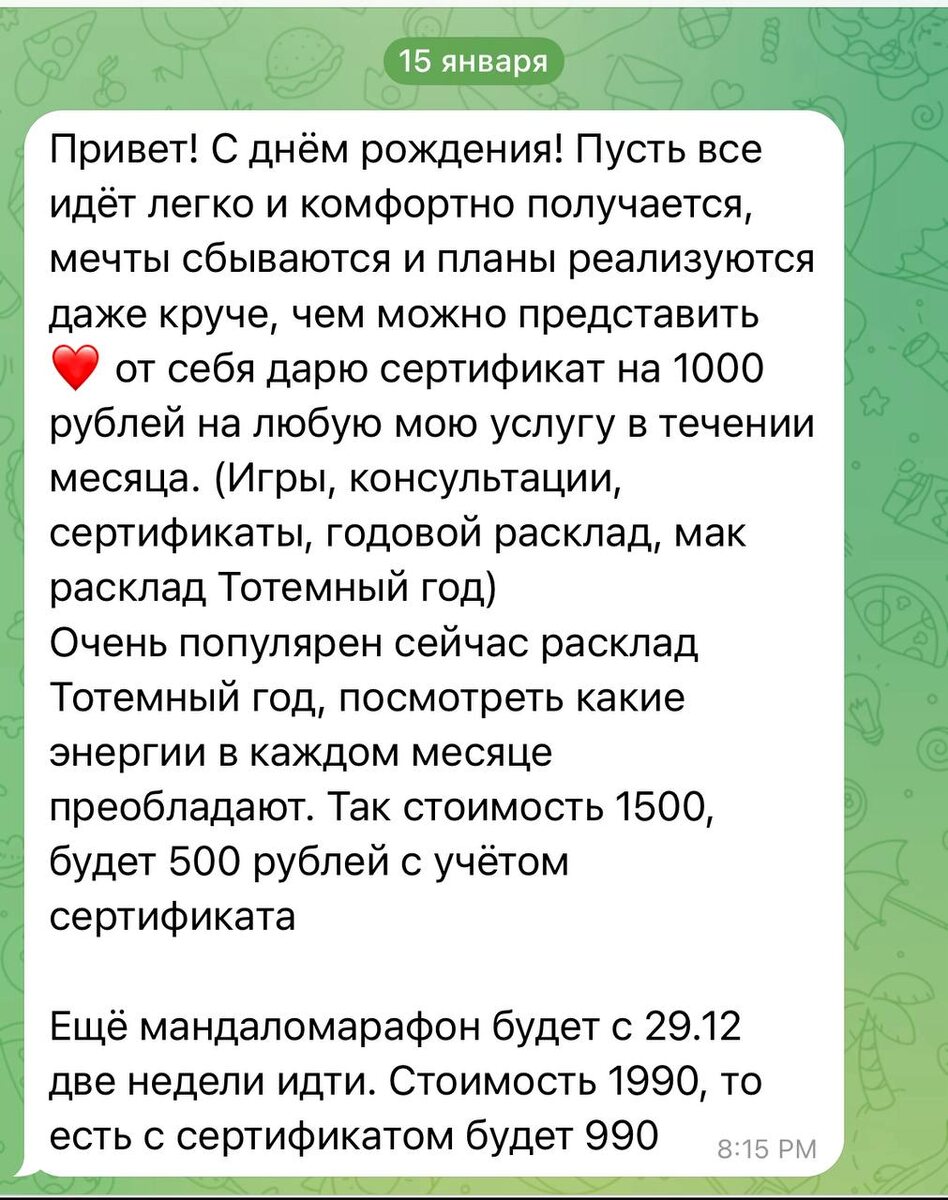 В январе, когда я праздновала свой день рождения мне пришло такое сообщение