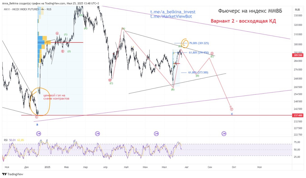 #MICEX ЦБ снизил ставку на 2% с 20% до 18%. Предполагала, что возможно на решении по ставке будет всплеск повыше. Однако рынку не хватило сил подняться выше максимум от 23 июля и пошла дальнейшая фиксация позиций по факту снижения ставки, которое было широко ожидаемо и по большей части заложено в цене. Отмечала, что торговые объемы сконцентрировались вверху, сигнал к развороту. Т.о., полагаю, что в развитии волна D of (X) of c треугольника – схематически обозначено на графике. Не является ИИР 💪 Бот Закрытого Канала (для оплаты из-за границы, пишите личным сообщением)