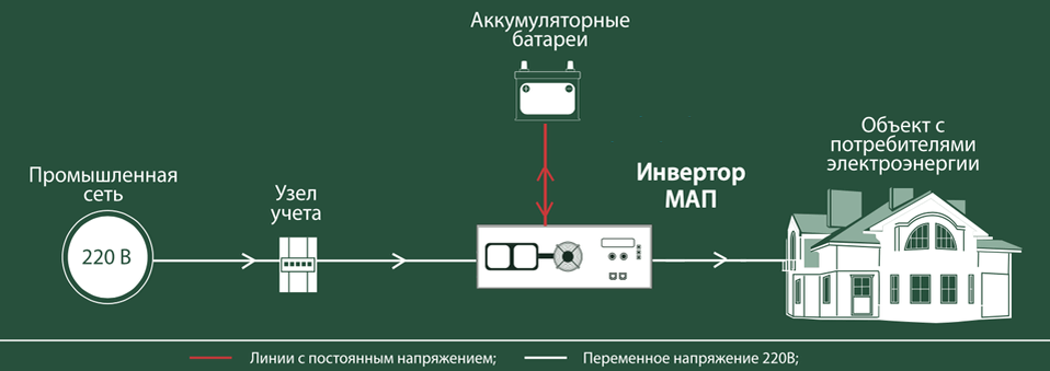 Как быть, если какое-то используемое в доме оборудование вызывает более высокие пусковые токи? В этом случае можно рекомендовать МАП HYBRID или добавить функцию Hybrid к модели «PRO». Гибридная функция обеспечивает возможность на короткое время выдавать в сеть дополнительную мощность от АКБ. Это дает возможность запускать мощные электроприборы без срабатывания защиты. Такую возможность имеют и топовые модели МАП DOMINATOR и МАП TITANATOR за счет встроенного функционала Hybrid.