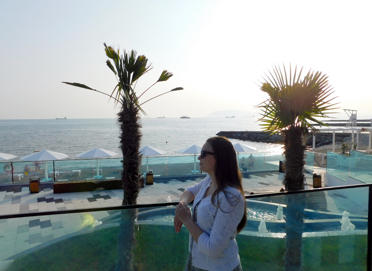 Шли мы прямо до поворота на маяк Дооб, слева по дороге, кстати, полным полно заброшенных детских лагерей — для любителей заброшек: там есть один без забора и охраны на огромной территории, где можно провести как минимум полдня. Мы же поднялись до первого здания и пошли дальше, так как сегодняшняя цель — «Рио». Перед поворотом на маяк мы завернули, наоборот, вниз и через ресторан прошли к лестнице к морю, откуда открывался приятный вид.