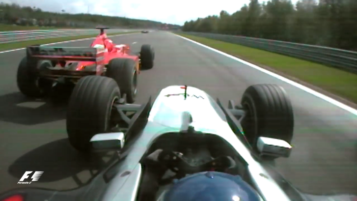 Обычно на полном газу «О Руж» мы проходим только в квалификации, но когда я преследовал Михаэля, то понял, что единственный способ обогнать его – это пройти поворот с полным газом. И я сделал это. Держался прямо за «Феррари», потом получил дополнительное ускорение, пристроившись за круговым и обогнал кругового по внутренней стороне. Это было фантастическое ощущение!