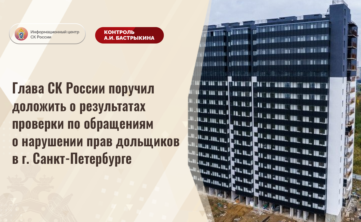 Глава СК России поручил доложить о результатах проверки по обращениям о нарушении прав дольщиков в г. Санкт-Петербурге