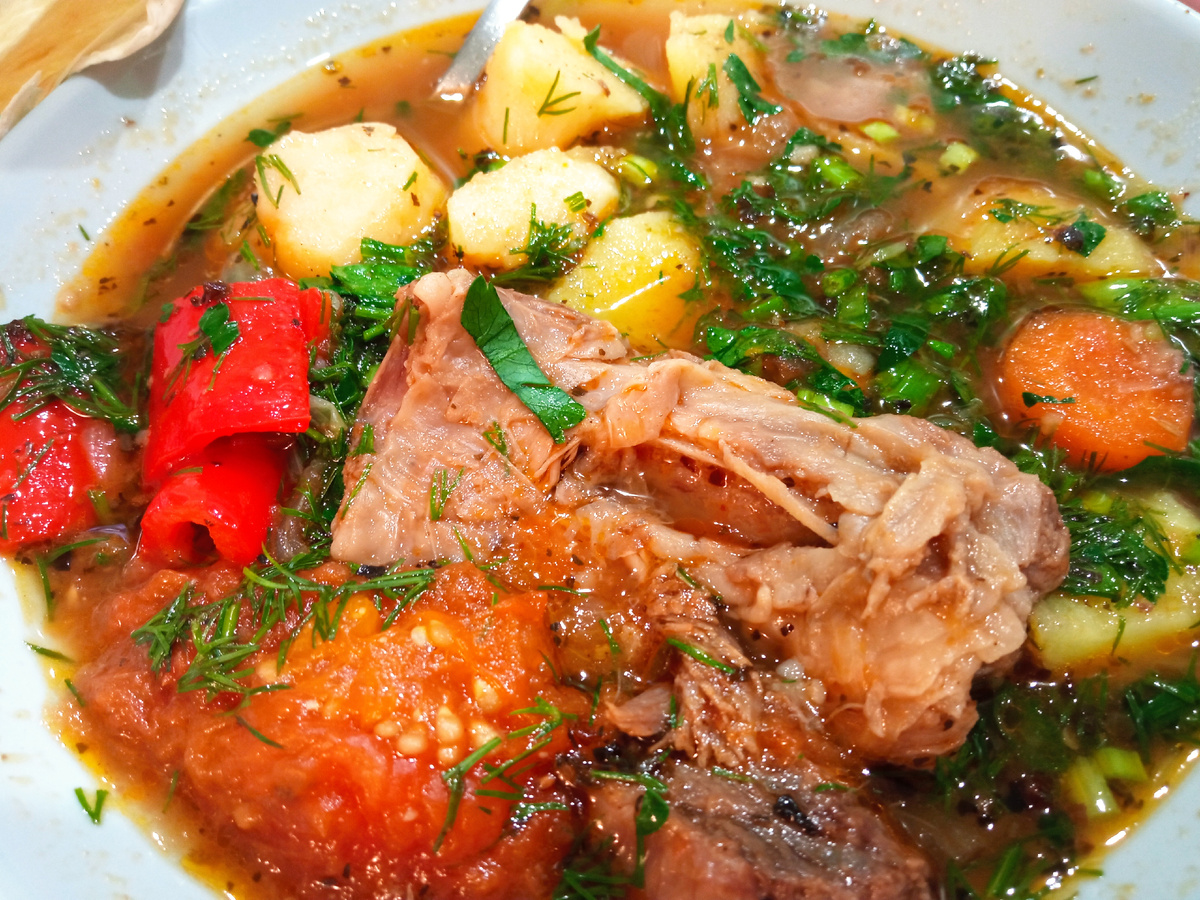 Представьте: свежий воздух, потрескивание дров в костре и волнующий аромат наваристой шурпы, томящейся в казане. Этот густой мясной суп с овощами и пряностями – настоящее блюдо для большой компании, которое особенно хорошо готовить на даче или в деревне. Давайте вместе создадим этот кулинарный шедевр! Сразу скажу, что ингредиенты я укажу в конце статьи, а для начала последовательность приготовления. У нас в планах покупка бОльшего казана, объемом 12 или 16 л (не можем определиться какой лучше). Ну а пока будем готовить в казане на 8 литров. Шурпу можно готовить двумя способами: отваривать мясо и овощи без предварительной тепловой обработки (такой способ чаше используется в узбекской кухне); заливать водой уже предварительно обработанные обжариванием мясо и овощи. 2. Перед закипанием добавляем пол порции соли или присаливаем и снимаем пену. На этом этапе добавляем две головки лука, уменьшаем огонь и варим на медленном огне 1,5-2часа. Все зависит от вида мяса. В качестве мяса может