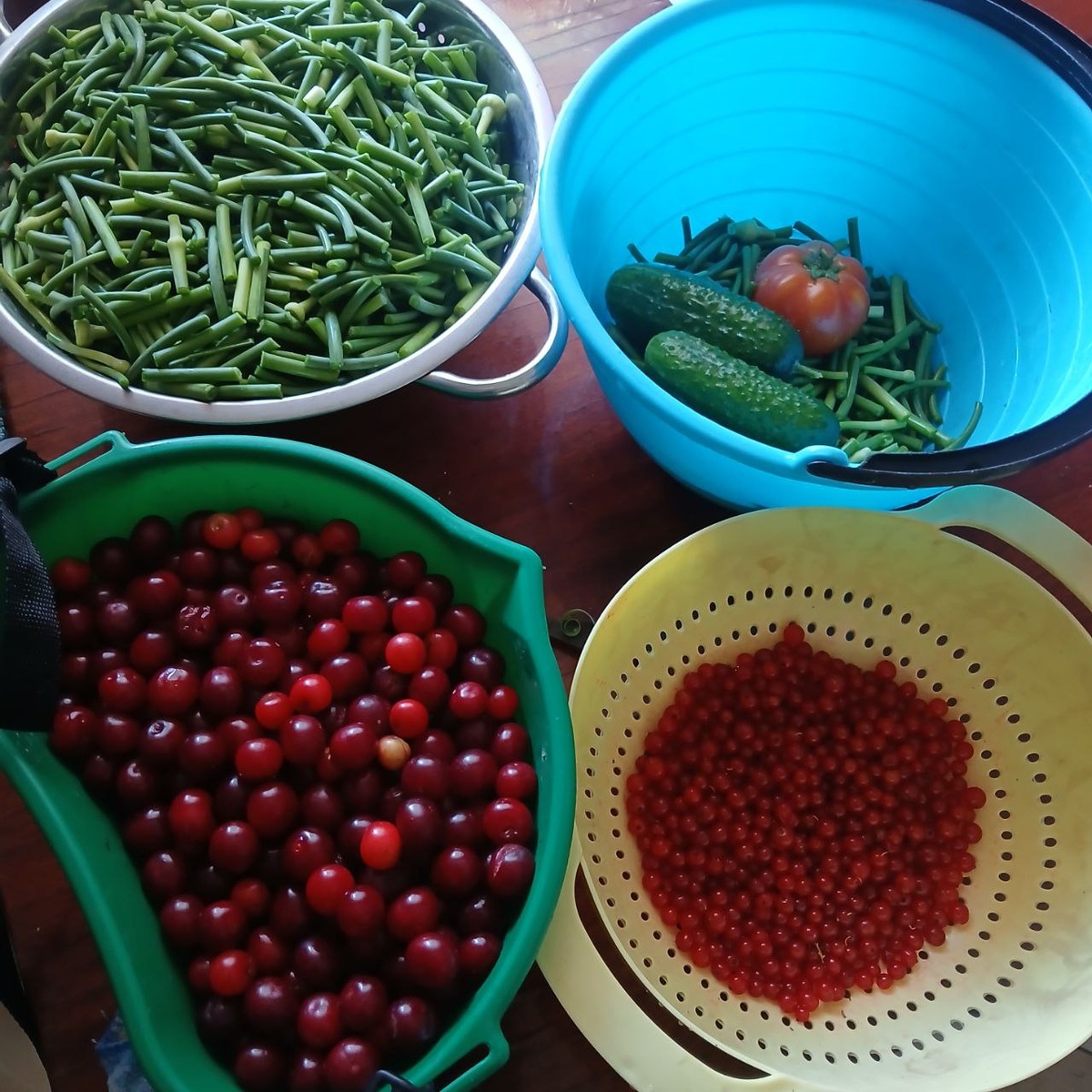А пока переработка урожая идёт полным ходом 😃. Остатки вишни🍒, чесночные стрелки🧄 и совсем чуток смородины))))