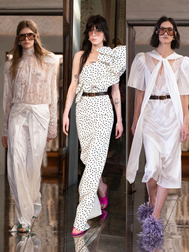 - Быстро пробегитесь по вешалкам. Эти 5 "диверсантов" (бежевый монохром, длинное тяжелое платье/юбка, "занавесочный" принт, кардиган-мешок, туфли-"бастионы") вы узнаете сразу!