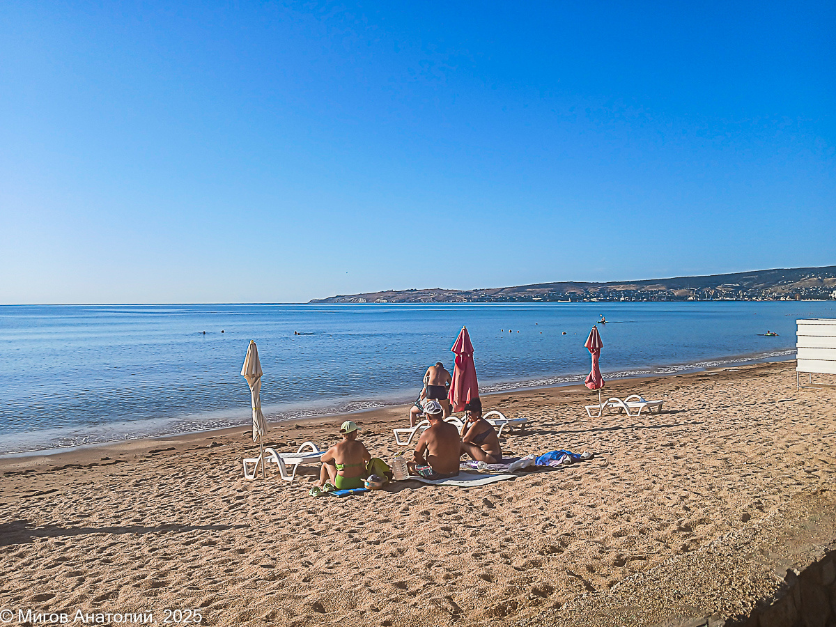 В комментариях просили рассказать про самые наши с Леной любимые пляжи. На первом месте у меня пляж у Черноморской набережной в Феодосии. И Лена тут со мною полностью согласна. Здесь не самые красивые виды на окружающий мир. Большой Феодосийский залив, вдали на востоке различимы строения курортного поселка Приморский, а на западе хорошо видна Феодосия и гора Тепе-Оба, спускающаяся к морю. Вот собственно и все виды. Если обогнуть Тепе-Оба, то попадешь в поселок Орджоникидзе. Там совсем другое дело. Там живописная бухта Провато, мыс Хамелеон, горные хребты Карадага. Красота! И там отличные пляжи на выбор - хоть песок, хоть камни, хоть уединенные маленькие бухточки. Люблю Орджо! Но Черноморскую набережную больше. Во-первых, удобно доехать и есть место для парковки. Во-вторых, не просто песок, а мелкая ракушка. В-третьих, ровное песчаное дно и никаких камней. И в-четвертых, глубина начинается в нескольких шагах от берега, не приходится долго брести по колено в воде. Один недостаток - очен