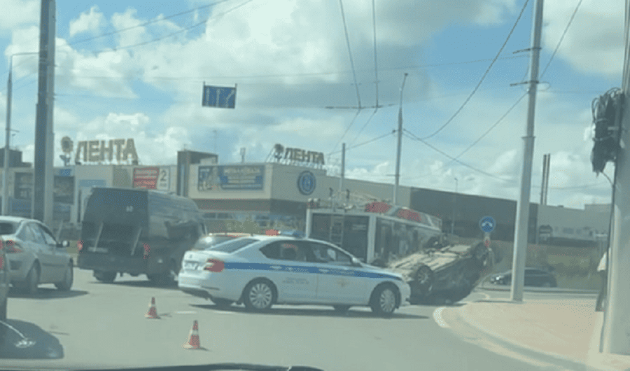 На кольце у “АэроПарка” в Брянске перевернулась легковушка