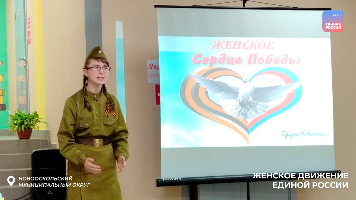 В рамках партпроекта «Женское движение Единой России» и акции «Женское сердце Победы Новоосколья» прошла патриотическая встреча. Участники говорили о судьбах женщин военного времени, которым выпала великая миссия – проявлять мужество и стойкость как на линии фронта, так и в тылу.