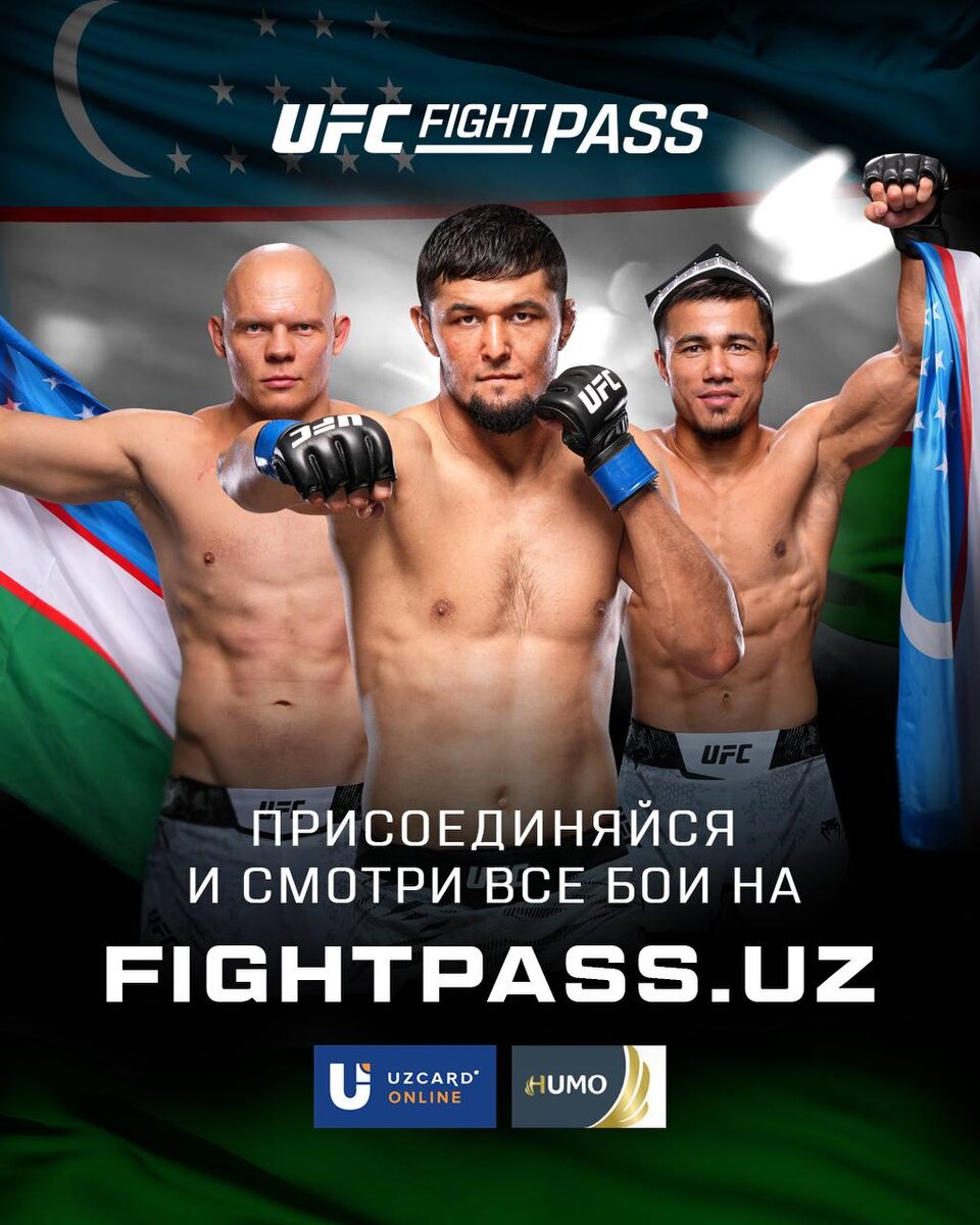🇺🇿 Отличные новости для наших фанатов из Узбекистана! Мы запустили сайт на узбекском языке, где можно оплатить подписку с помощью кард Humo и UzCard. В честь выступления Богдана Гуськова на #UFCAbuDhabi и возвращения Нурсултона Рузибоева на #UFC319 действуют большие скидки. Переходи на UFC Fight Pass, выбирай тариф и следуй инструкциям. Добро пожаловать во вселенную UFC!
