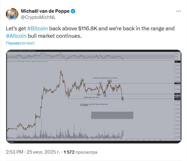 Давайте вернём биткоин выше $116,8 тыс — и мы снова в рейндже, а бычий рынок альткоинов продолжится