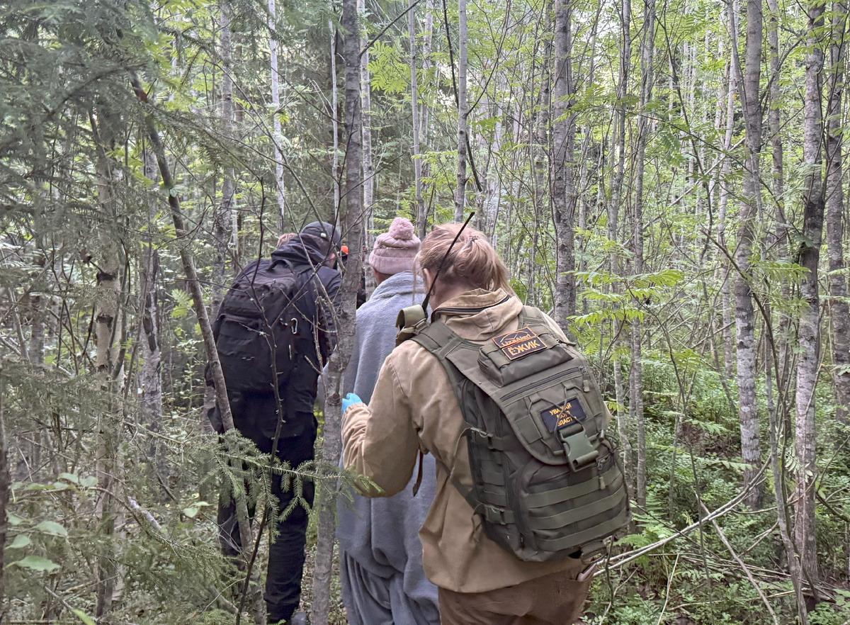 — Анатолий Борисович, мы так рады, что вас нашли! — А я-то как рад, девчонки вокруг молодые, красивые! — Шапку наденете? — А чего ж не надеть, кудрей-то нету! Бодрится, шутит. Говорит, неприлично перед женщинами без рубашки из лесу выходить. Мы уверяем, что всё прилично, и плед не хуже накидки Понтия Пилата. Анатолий Борисович обещает прочитать нам какое-то напутствие, как пророк. А почему он без рубашки и даже без обуви? Потому что уже степень переохлаждения крайняя, и он раздевался. Одежду мы тоже нашли, метрах в двухстах. Да, в жару 30 градусов переохлаждение кажется нелепым, но на самом деле времени у нас оставалось мало. Шли третьи сутки, выпала роса, лес… Лучше не вспоминать. Анатолий Борисович очень нам помог, откликался хорошо и бодро, так долго, как было нужно. Был в сознании и в порядке, помнил, какой день и когда шел дождь, сказал, что слышал мой голос, когда ещё было темно. Я тоже его слышала, но потом потеряла, не дошла, а отклик не повторился. Мы продолжили хорошо выполня