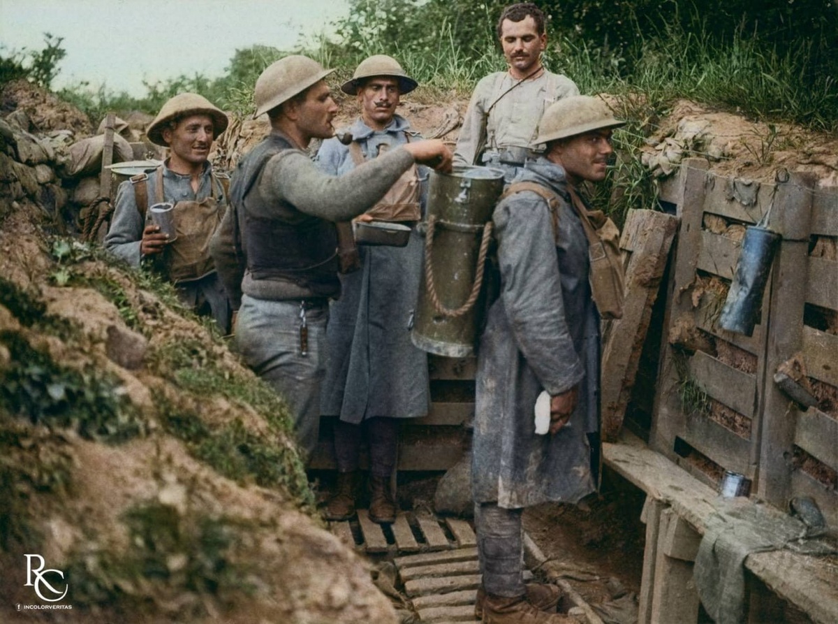 Доставка горячего супа в португальскую траншею, сектор Нев-Шапель, 25 июля 1917 года.