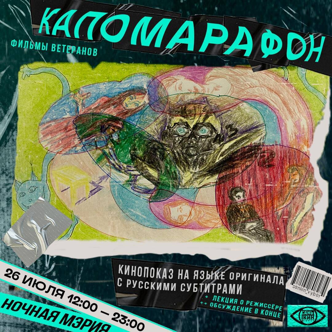 ИЮЛЬСКИЙ КАПОМАРАФОН Раз в месяц киноклуб «Санькин выбор» смотрит фильмы, которые выбрали его Ветераны и Меценаты. 🗓️ 26 июля 12:00-23:00 📍Льва Толстого, 71/11 (вход со двора) I. 12:00-14:00 | РАНДОМАЙЗЕР — КЭРРИ | 1976 реж. Брайан де Пальма капо: Римма Зверева агитка: Робкую и доверчивую старшеклассницу Кэрри третируют и обижают в школе и дома. Так добрая девушка становится замкнутой и мрачной, и в то же время она открывает в себе страшные силы. II. 14:00-17:00 | ДЕМОКРАТИЯ — ТРАНСФОРМЕРЫ 3: ТЁМНАЯ СТОРОНА ЛУНЫ | 2011 реж. Майкл Бэй капо: Лёва Гувап Гетто Воин агитка: наинстереснейшик блокбастер фантастический боевик III. 17:00-19:30 | САНЬКИН ВЫБОР — ВЫКОРМИ ВОРОНА | 1976 реж. Карлос Саура капо: Александра Кролевец агитка: porque te vas IV. 19:30 - 20:10 | САНЬКИН ВЫБОР — ПОЛНЫЙ МОДЕРН: ТВИН ПИКС | 1995 реж. Андрей Балашов, Анна Пармас капо: Анна Феклистова, Дарья Мазина агитка: Это настоящий артефакт — эпизод сериала «Полный модерн» под названием Wisp Peaks, вышедший