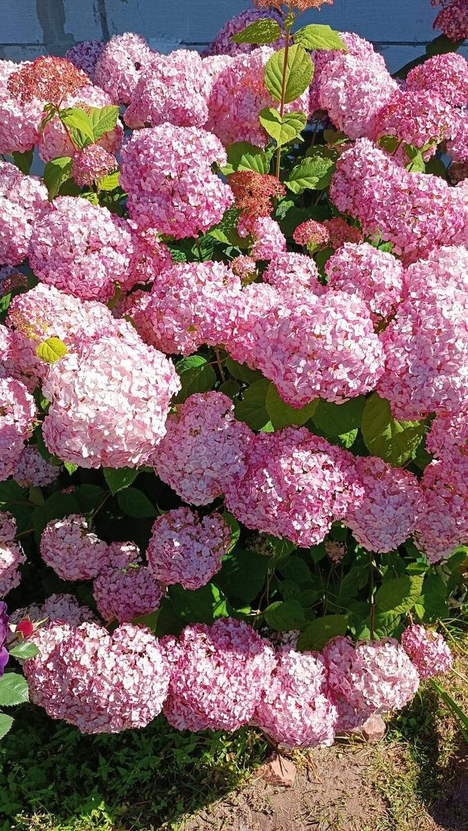 Розовая древовидная гортензия Кандибелле Баблгам цветёт с июля по октябрь. Ее крупные куполообразные соцветия имеют характерный пудрово-розовый цвет. Не правда ли, ее оттенок напоминает клубничную жевательную резинку, которую жевали в детстве? На фоне свежей зелёной листвы смотрятся очень выигрышно. С наступлением осенних холодов приобретает сверкающий золотистый оттенок. Кстати, Candybelle Bubblegum – это целая сортосерия гортензий. Кусты этой гортензии растут прямо и выглядят аккуратно. Только под тяжестью шапок ветки могут наклоняться. Но если куст правильно обрезан и ухожен, то уже в 3-летнем возрасте может стойко держать свои шапки. Кандибелле Баблгам хорошо развивается в пятнистой тени и на солнечном месте. Лучше для ее посадки выбирать тихие спокойные местечки, защищенные от северных ветров. Пусть это место будет возле стены дома или рядом с живой изгородью. Для выращивания Кандибелле Баблгам подойдет нещелочная плодородная почва. Перед посадкой в яму нужно добавить достаточ