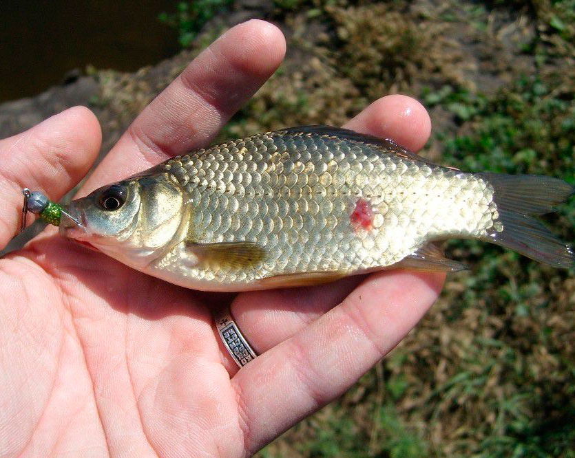 К счастью, во время рыбалки, в улове очень редко попадается больная рыба, хотя это зависит от водоема. Например, в городских водоемах, или в тех, куда часто сбрасывают сточную воду и т.д., больная рыба попадается немного чаще. Тем не менее рыбакам нужно знать с чем они сталкиваются. Приветствую вас уважаемые рыбаки, вы на канале "Клевая рыбалка". Я думаю хоть раз за всю жизнь вам попадалась рыба с черными точками (постодиплостомоз). Такая рыба не опасна для человека кстати. Гораздо реже попадается рыба с красноватыми пятнами. Данная напасть поражает семейство карповые, но преимущественно и чаще попадаются с красными пятнами караси и карпы. Что же это за зараза такая-то? Зовут её, как нетрудно догадаться "краснухой", либо же "аэромоноз". Это не паразит, а бактериальная инфекция. Некоторые ещё называют эту напасть брюшной водянкой. Большая часть пораженной рыбы не выживает с краснухой, а те что выжили, будут иметь непродолжительный иммунитет. Помимо этого, "живет" такая напасть у рыбы