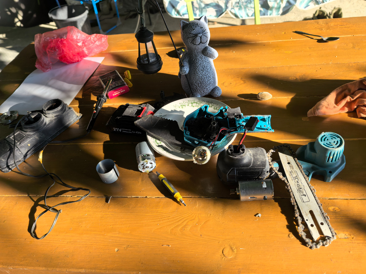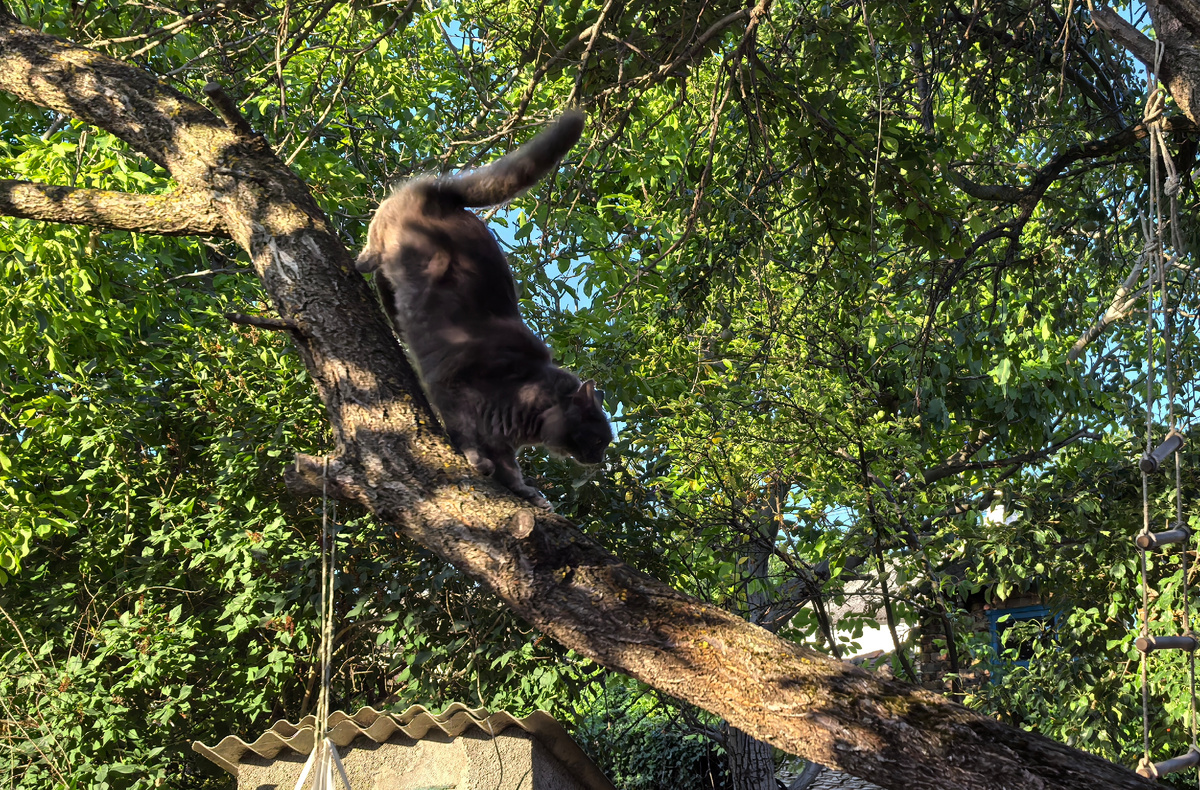 С вечера поступило предложение никого не будить, вот только кошке об этом не сказали. Где она ночи проводит неизвестно, но в пять утра уже на подоконнике. Встали с кошкой, кофе попили, полазили по деревьям. Утром самое лучшее время, как можно спать, непонятно. Но никого не будим, так, топаем потихоньку. Мусор со всех корзин собрали в один большой мешок, у нас вывоз мусора по пятницам, мешок на улицу, потом машина проедет, заберет. Можно и самому на помойку отнести, но до нее метров 300. Поэтому все органическое в компост, отходы сухие. Полили немного, голодно. Завтрак приготовил, съел, все спят. Занялся ремонтом пилы электрической. В этом чуде китайской конструкторской мысли развалился пластиковый держатель угольной щетки. Ремонт невозможен, мотор под замену. На озоне 500 рублей стоит. Перепаял, собрал, не работает. Может аккумулятор? Зарядная станция в комнате, где спят, опять пошел топать, не просыпаются. Вспомнил, что обещал жене заземление сделать, а то посудомойка дерётся токо