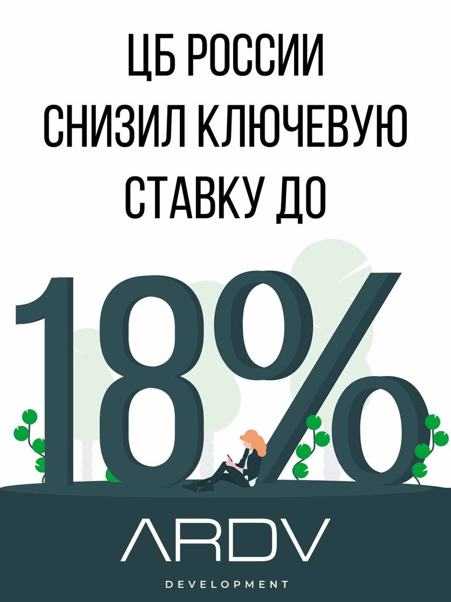 📉 Ключевая ставка снова снижена — время действовать! ⠀ Банк России снизил ключевую ставку с 20% до 18% Эксперты уверены: это сигнал для всех, кто давно задумывался о покупке недвижимости. Почему? ⠀ ✅ Снижение ставки напрямую влияет на ипотечные условия — банки снижают проценты по кредитам, и квартира становится реально доступнее. ✅ Стоимость жилья растёт, особенно в новостройках — сейчас ещё можно купить по привлекательной цене. ✅ Платёж по ипотеке при снижении ставки может сократиться на тысячи рублей в месяц — а в пересчёте на годы это сотни тысяч экономии! ⠀ 📍 Приглашаем вас в отдел продаж ARDV Development — поможем подобрать квартиру вашей мечты в Каспийске, расскажем об актуальных условиях, программах и предложениях. Сейчас в продаже — самые востребованные планировки и горячие цены 🔥 ⠀ 📞 Узнать больше и записаться на просмотр: 8 800 101 46 26 📍 г. Каспийск, пр-т Омарова, 12 ⠀ Не упустите момент. ARDV Development — строим уверенность в завтрашнем дне.