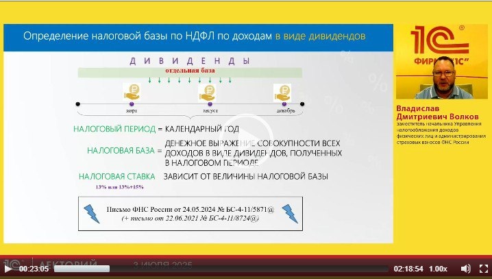 рассказал Владислав Волков, заместитель начальника Управления налогообложения доходов физических лиц и администрирования страховых взносов ФНС России, в лекции на тему Практика применения новшеств 2025 г. Сложные вопросы исчисления и перерасчета НДФЛ и формирования корректирующей отчетности