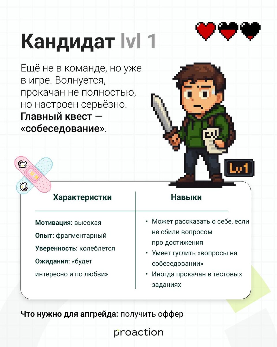🗣Карьерный путь — это тоже игра С уровнями, апгрейдами и сложными квестами. Мы решили взглянуть на развитие сотрудника глазами геймдизайнера. Получилось 6 персонажей: от новичка до управленца. А в реальной жизни прокачивать персонажей сотрудников помогает оценка и индивидуальные планы развития. Используете в работе?