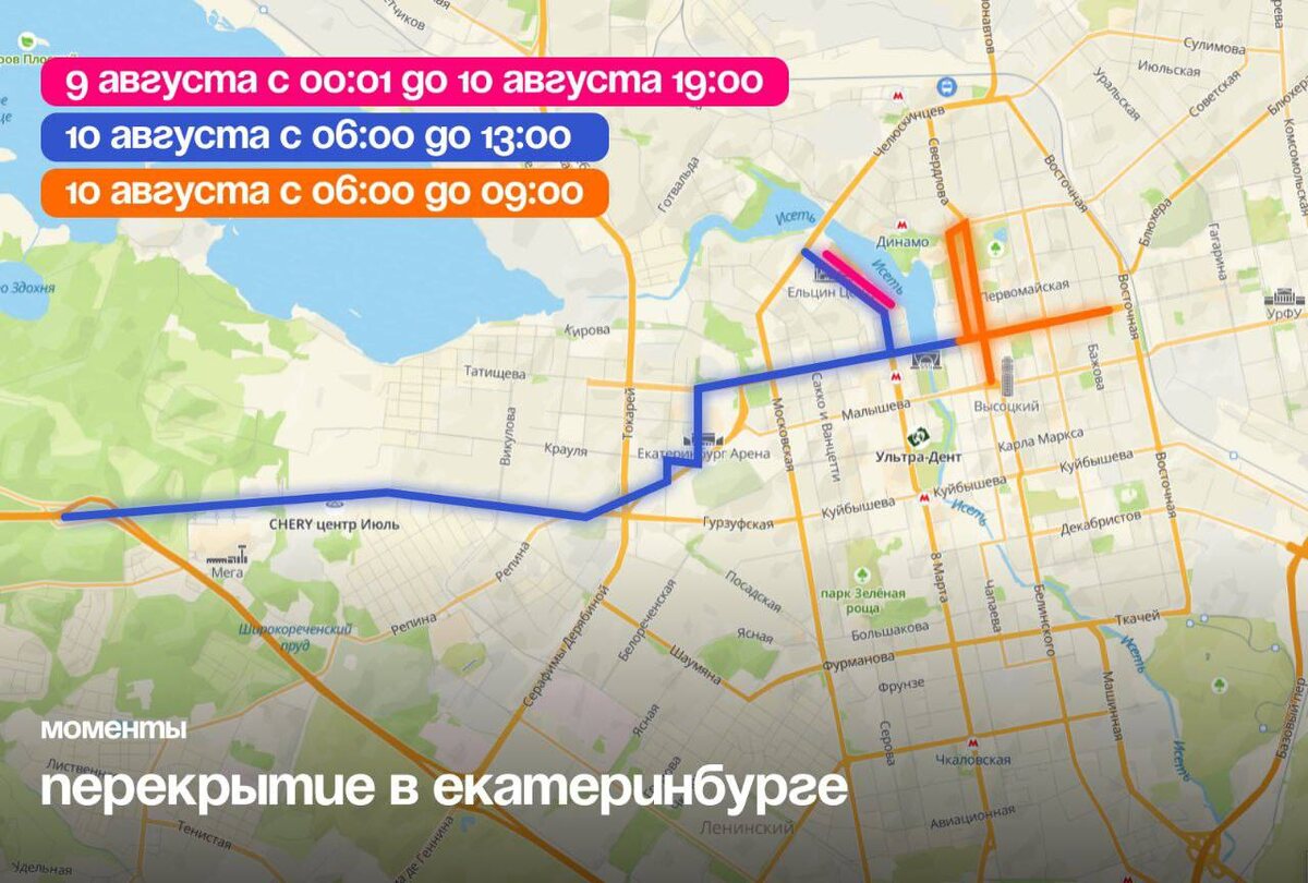Кроме того, 10 августа с 06:00 до 13:00 перекроют проспект Ленина (от Пушкина до Мичурина), улицу Карла Либкнехта (до Царской и далее до Ленина), участок от Малышева до Шевченко, а также улицу Николая Никонова до Толмачева. Горожанам рекомендуют заранее планировать маршрут.