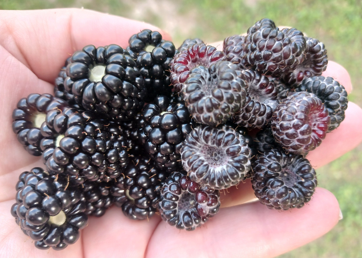 Вроде бы смешной вопрос, на который обычный человек быстро ответит: малина красная, а ежевика черная. В 90% случаев это работает, т.к. мало кто имеет желтую, белую, черную или пурпурную малину. А белая ежевика так вообще редкость, я сама о ней узнала только недавно. Конечно, кусты отличаются, но не все и не всегда. Некоторые уж очень похожи. А самое главное, что структура ягоды - сложная костянка, у малины и ежевики тоже одинаковая. А если ягода собрана, то как отличить? Специально сделала фото с разным освещением. Уже не так все однозначно, верно? Не буду вдаваться в ботанические тонкости, скажу простым языком - малина внутри пустотелая (справа на фото), т.к. при сборе цветоложе остается на ветке, а ягода ежевики отрывается с цветоложем, в центре (в месте отрыва) видно белую сердцевину. Вот такое простое наблюдение позволит вам всегда определить ягодку и для этого совсем не нужно быть ботаником или агрономом! На данный момент у меня в Подмосковье отходит черная малина и начинается е