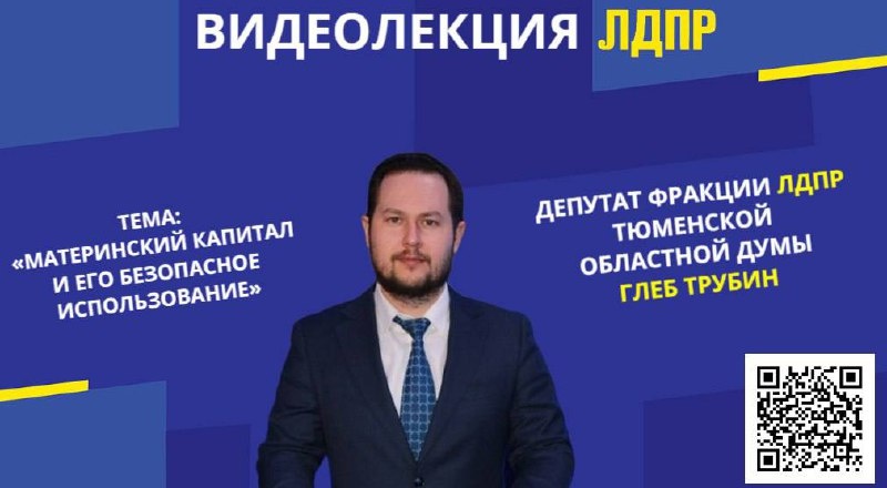 ЛДПР запускает цикл лекций по финансовой грамотности Депутат фракции ЛДПР Тюменской областной Думы Глеб Трубин в рамках рубрики «Финансовая грамотность с ЛДПР» подробнее рассказал о материнском капитале. В видео-лекции вы узнаете кому положена данная мера поддержки, как ее правильно использовать и как защитить себя от мошенников. Посмотреть видео можно отсканировав куар-код или перейдя по ссылке: https://disk.360.yandex.ru/d/xqCHAapu3GHe9w Если у вас остались вопросы вы можете их задать в комментариях по ссылке: https://vk.com/wall-100973194_19754