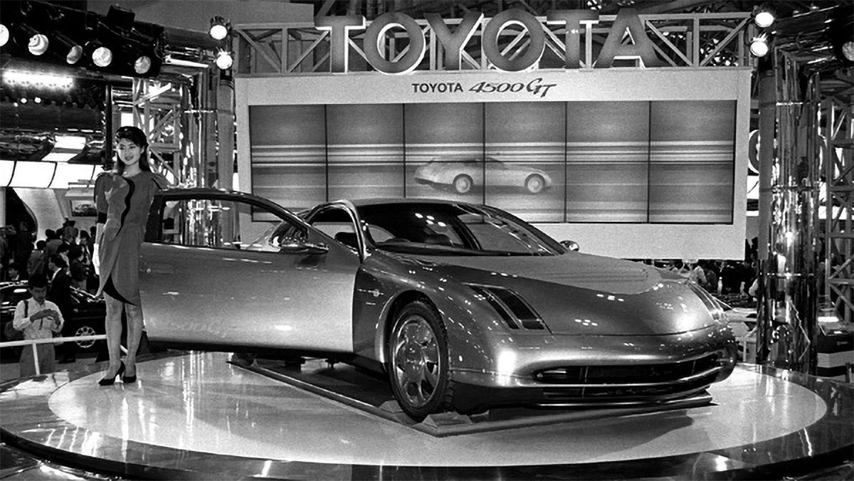 Насколько неоднозначным и непредсказуемым было будущее автомобильной промышленности в 90-х, лучше всего продемонстрировал главный экспонат стенда японского бренда – представленная в этой статье модель. Toyota 4500 GT уже заявила о себе несколькими неделями ранее на автосалоне IAA во Франкфурте. Показательно, что японцы планировали премьеру автомобиля именно там: словно желая показать немцам на их собственной земле, что им стоит их опасаться.