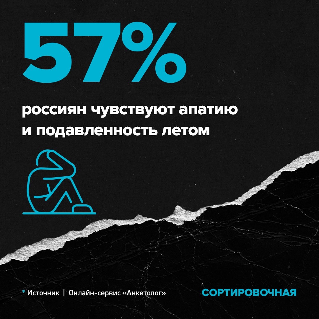 👉 По данным опроса онлайн-сервиса «Анкетолог», больше половины россиян сталкиваются летом с подавленностью и апатией. И погода — одна из основных причин наравне с финансовыми трудностями и здоровьем.