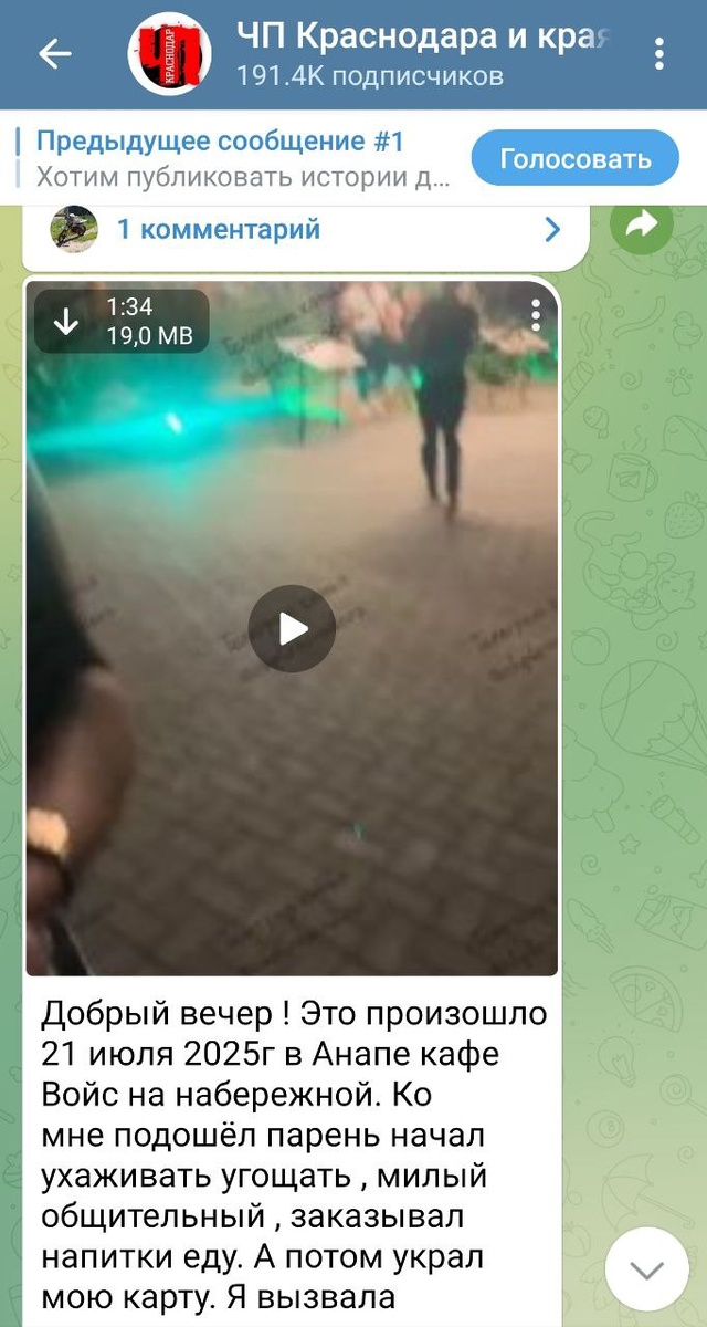 🏛 В Отдел МВД России по городу Анапе 21 июля этого года обратилась девушка, ставшая жертвой злоумышленника.