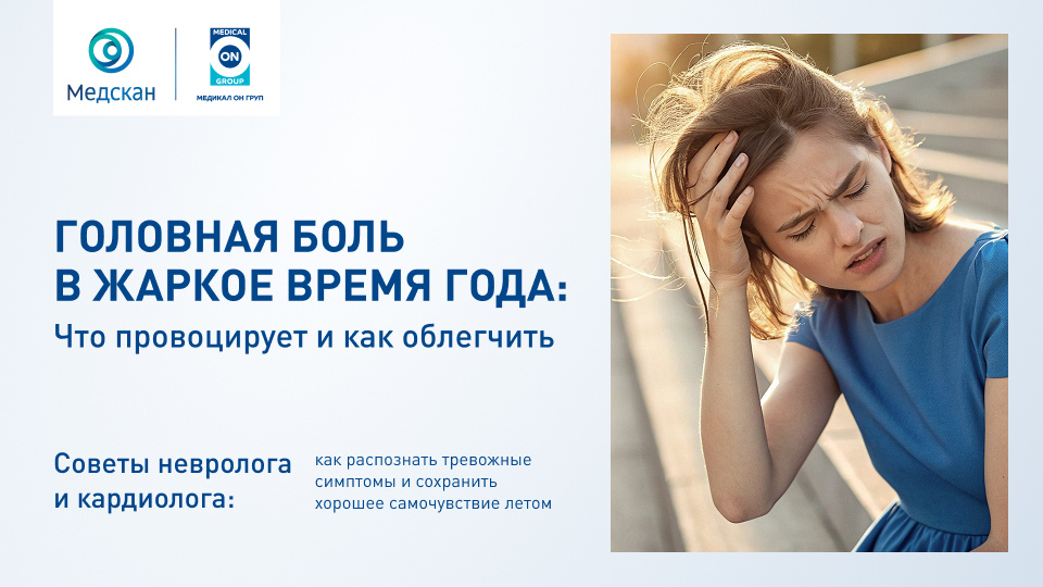 ☀️ Череда тропических ливней в Московском регионе завершена. Впереди нас ждут солнечные и теплые дни. Жаркие летние дни – это не только отдых, релакс и солнце, но и частые головные боли. Почему так происходит и как избежать дискомфорта? Разбираемся вместе с неврологом и кардиологом «Медикал Он Груп». 5 основных причин: — Обезвоживание – потеря жидкости снижает объем крови, ухудшая питание мозга и коронарный кровоток. — Перегрев и тепловой удар – расширение сосудов провоцирует пульсирующую боль, может возникнуть тахикардия. — Солнечный перегруз – длительное пребывание на солнце без головного убора вызывает спазмы. — Скачки давления – жара усиливает нагрузку на сердечно-сосудистую систему. — Духота и нехватка кислорода – в закрытых помещениях или при высокой влажности мозг буквально «задыхается». Как предотвратить головную боль в жару: — Пейте больше воды (1,5–2 л в день, избегая сладких и алкогольных напитков). — Носите головной убор и солнцезащитные очки – это снизит риск перегрева. —