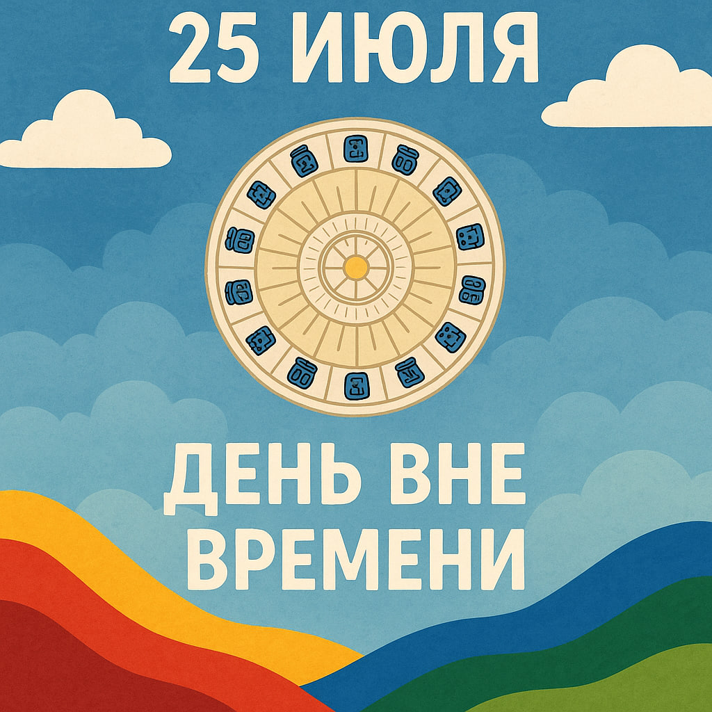 25 июля — это не просто дата. В Галактическом Календаре майя этот день называют Днём вне времени. Он не принадлежит ни одному месяцу и выпадает между завершением одного года и началом другого. Это не линия времени — это точка сброса. Пространство между прошлым и будущим.