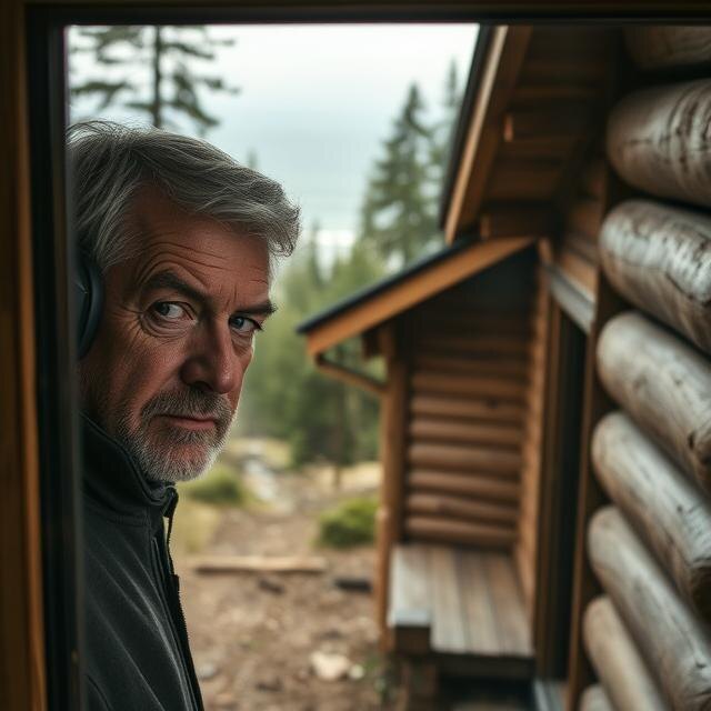 Здесь, на небольшом полуострове, растительность была не такой густой. Среди сосен и елей виднелась поляна, а на ней – добротный, хоть и небольшой, бревенчатый дом-пятистенок. Сруб был свежим, бревна еще не успели потемнеть от времени и непогоды, а крыша была покрыта новым, поблескивающим на солнце металлом. Было очевидно, что здесь недавно прошел серьезный ремонт. Рядом с главным зданием виднелся аккуратный сарайчик и поленница, ровно уложенная под навесом. Все выглядело ухоженно и обжито.