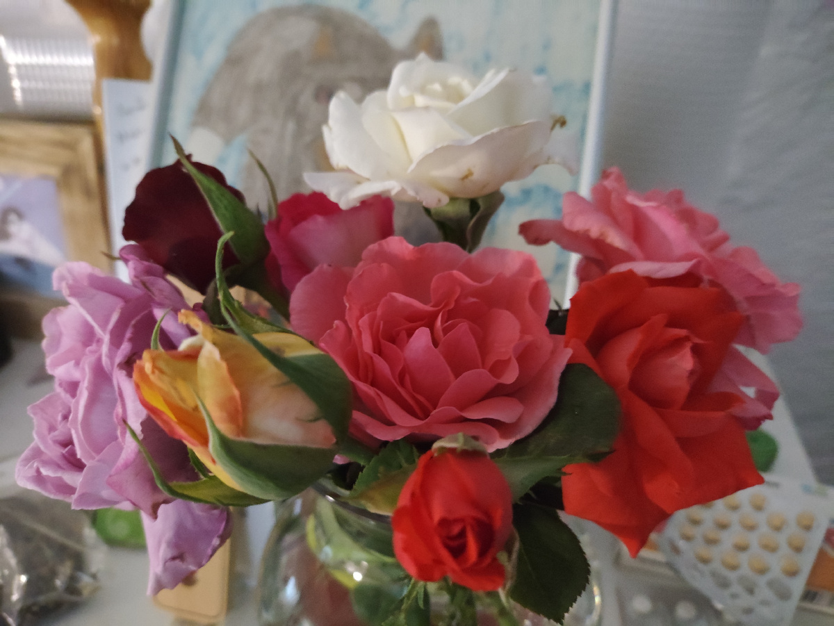Потом еще захотелось букетик обновить, пошла розочек нарезала. А они еще все в бутонах. Но все равно симпатично получилось.
