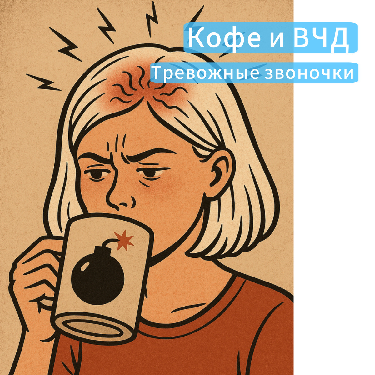 Здоровым людям:Умеренное потребление кофе (1-3 чашки в день) вряд ли вызовет проблемы с ВЧД. Следите за водным балансом!