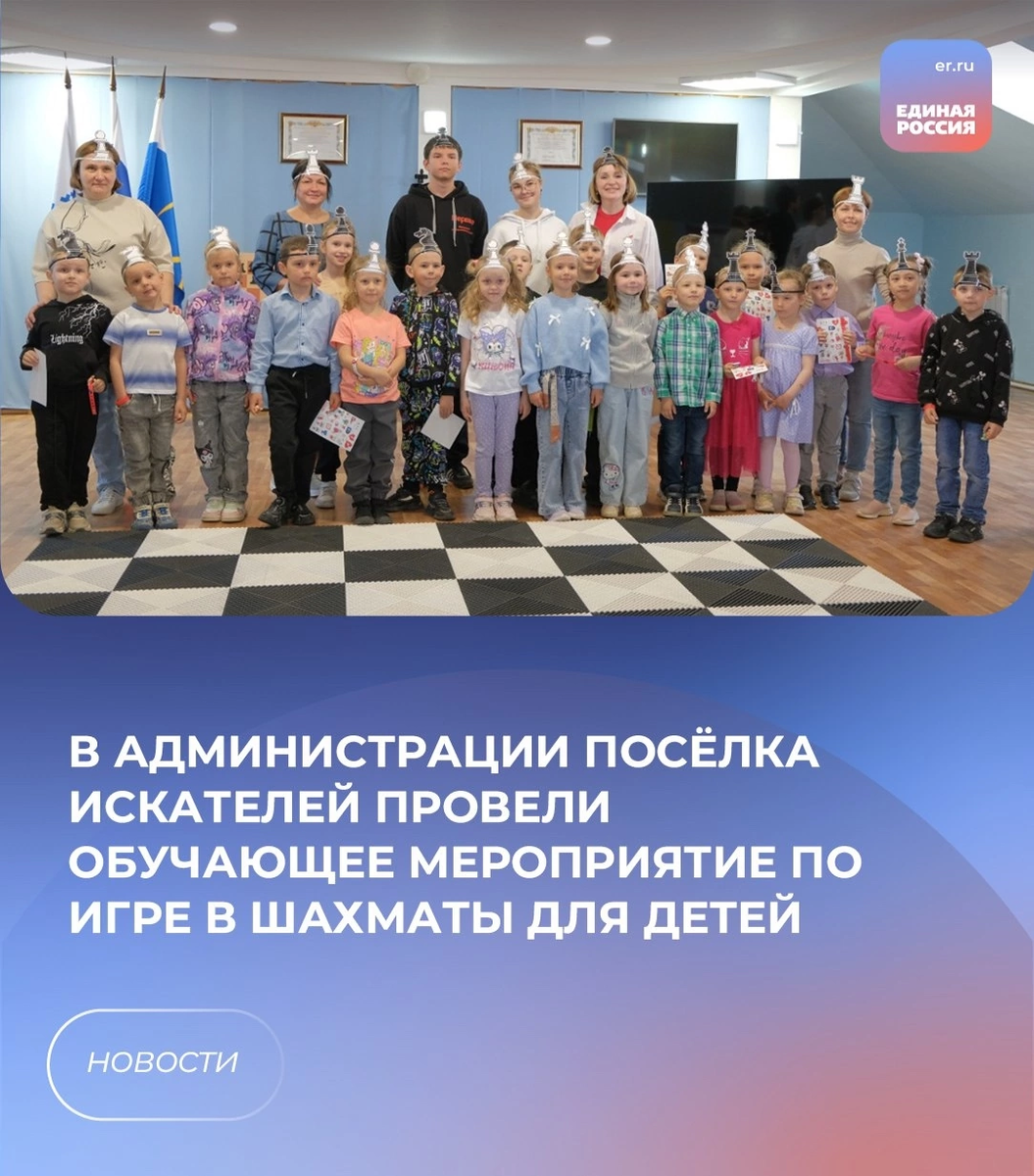 Партактив проекта «Женское движение Единой России» совместно с активистами «Движения Первых» и Федерацией шахмат НАО провели обучающее мероприятие по игре в шахматы для детей в Администрации посёлка Искателей. В рамках мероприятия воспитанники ГБДОУ НАО «Центр развития ребенка-детский сад п. Искателей» получили первые навыки шахматной игры. Ребята познакомились с основами шахматной стратегии, узнали о шахматных фигурах и правилах игры. «Игра — это ведущий вид деятельности у детей дошкольного возраста, и, конечно же, очень важно включать в работу с детьми различные виды игр: сюжетно-ролевые и настольные. В особенности — шахматы. Это очень сложная, но интересная игра, которая развивает различные навыки: логическое и пространственное мышление, умение думать наперед, внимательность, память и эмоциональный интеллект. Дети учатся не только радоваться победе, но и справляться с поражением. Я очень рада, что мы сегодня провели такое мероприятие, и что оно нашим детям очень понравилось и за