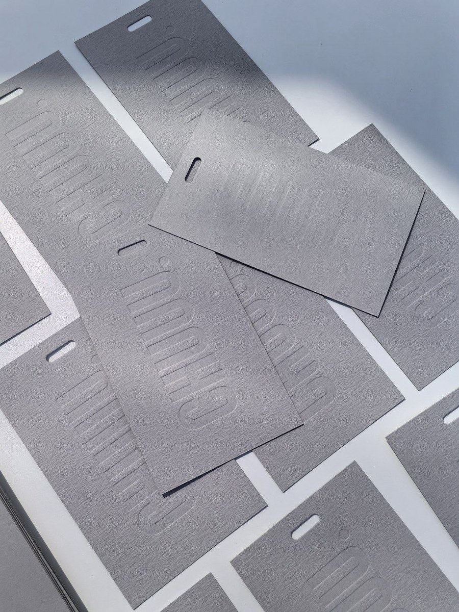 Великолепные бирочки 70*120мм на дизайнерской бумаге COLORLAB с тиснением логотипа - сегодня отправились клиенту