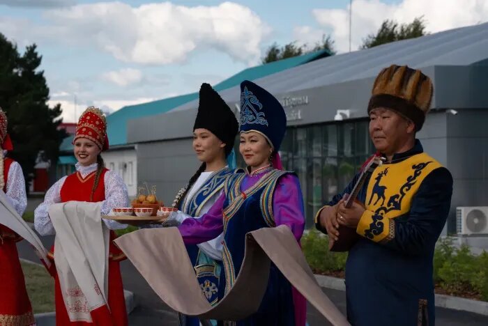 «Это участники международной экологической конференции, которая проходит в Республике Алтай. Их встречали с караваем, алтайским музыкальным приветствием и национальными сладостями. Международный терминал площадью 550 кв. метров напрямую соединён с основным зданием аэропорта. Он оснащён инженерными системами, стойками регистрации, фуд-зоной и залом для переговоров», – отмечается в сообщении тг-канала «Пул №3».