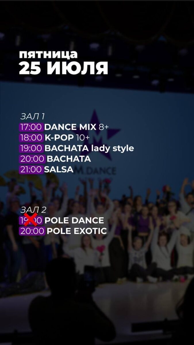 Друзья, у нас небольшие изменения в расписании на сегодня: Отмена следующих занятий⤵️⤵️⤵️ 19:00 - Pole dance 💌Наше полное расписание https://m-odintsovo.ru/raspisanie/ Мы ждём вас в MDance!💜