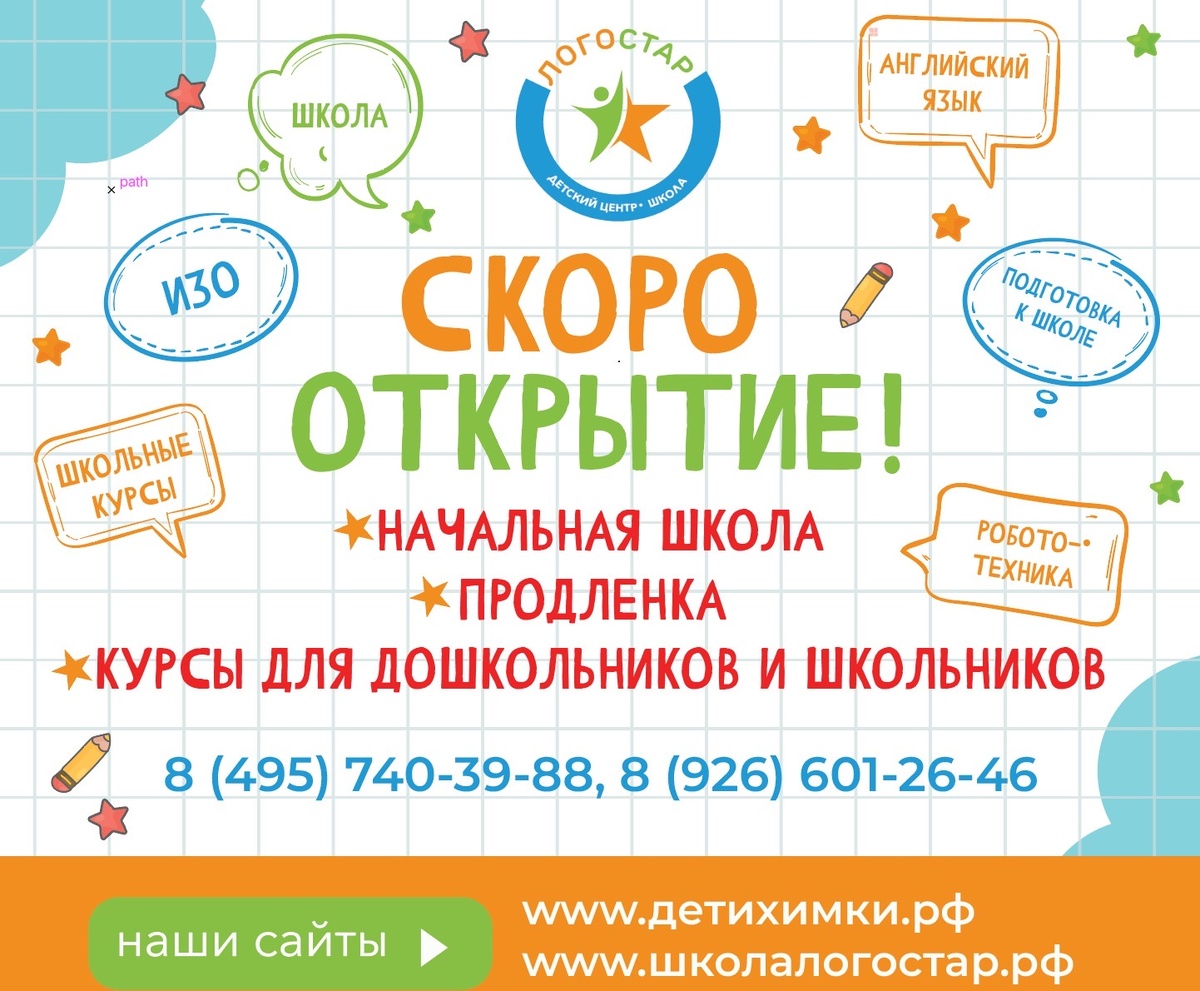 ## 🎓 Откройте двери в мир знаний вместе со школой «Логостар»! ### Ваше будущее начинается здесь! **Дорогие родители!** Приглашаем вас и ваших детей в уникальную семейную школу «Логостар» в Химках — место, где образование становится увлекательным приключением! ### Почему именно мы? * **Малые классы** до 12 учеников — индивидуальный подход к каждому ребёнку * **Сильная академическая база** по программе ФГОС * **Современные методики** обучения и развития * **Профессиональные педагоги** с высшим образованием * **Комфортная атмосфера** семейного обучения ### Что ждёт вашего ребёнка? * **Основные предметы:** * Русский язык и литература * Математика * Английский язык по международным программам * Окружающий мир * **Дополнительные направления:** * Скорочтение и развитие памяти * Творческие занятия и рисование * Шахматы * Проектная деятельность * Финансовая грамотность ### Особые преимущества: * **Продлёнка** с выполнением домашних заданий * **Творческие мастерские** * **Совр