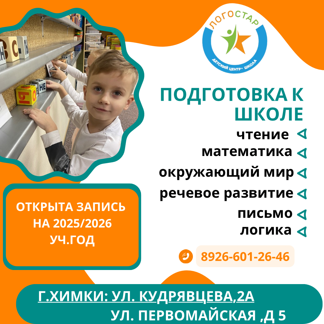 ## Подготовка к школе в детском центре «Логостар» ### Основная информация Детский центр «Логостар» предлагает комплексную программу подготовки детей 4–7 лет к школе. Занятия проводятся в группах до 8 человек, что обеспечивает индивидуальный подход к каждому ребенку. ### Программа подготовки * **Обучение чтению** по методике кубиков Зайцева * **Математика и логика** * **Каллиграфия** с укреплением мышц кисти * **Интеллектуальный тренинг** * **Окружающий мир** * **Развитие речи** ### Формат занятий * **Длительность курса:** 72 занятия (8 занятий в месяц) * **Частота:** 2 раза в неделю * **Продолжительность:** 60 минут * **Стоимость:** 7200 рублей ### Преимущества программы * **Маленькие группы** до 8 человек * **Комплексный подход** к развитию ребенка * **Адаптация к школе:** обучение взаимодействию с учителями и сверстниками * **Развитие самостоятельности** и дисциплины * **Повышение уверенности** в себе у стеснительных детей ### Результаты обучения После прохождения курса ребенок