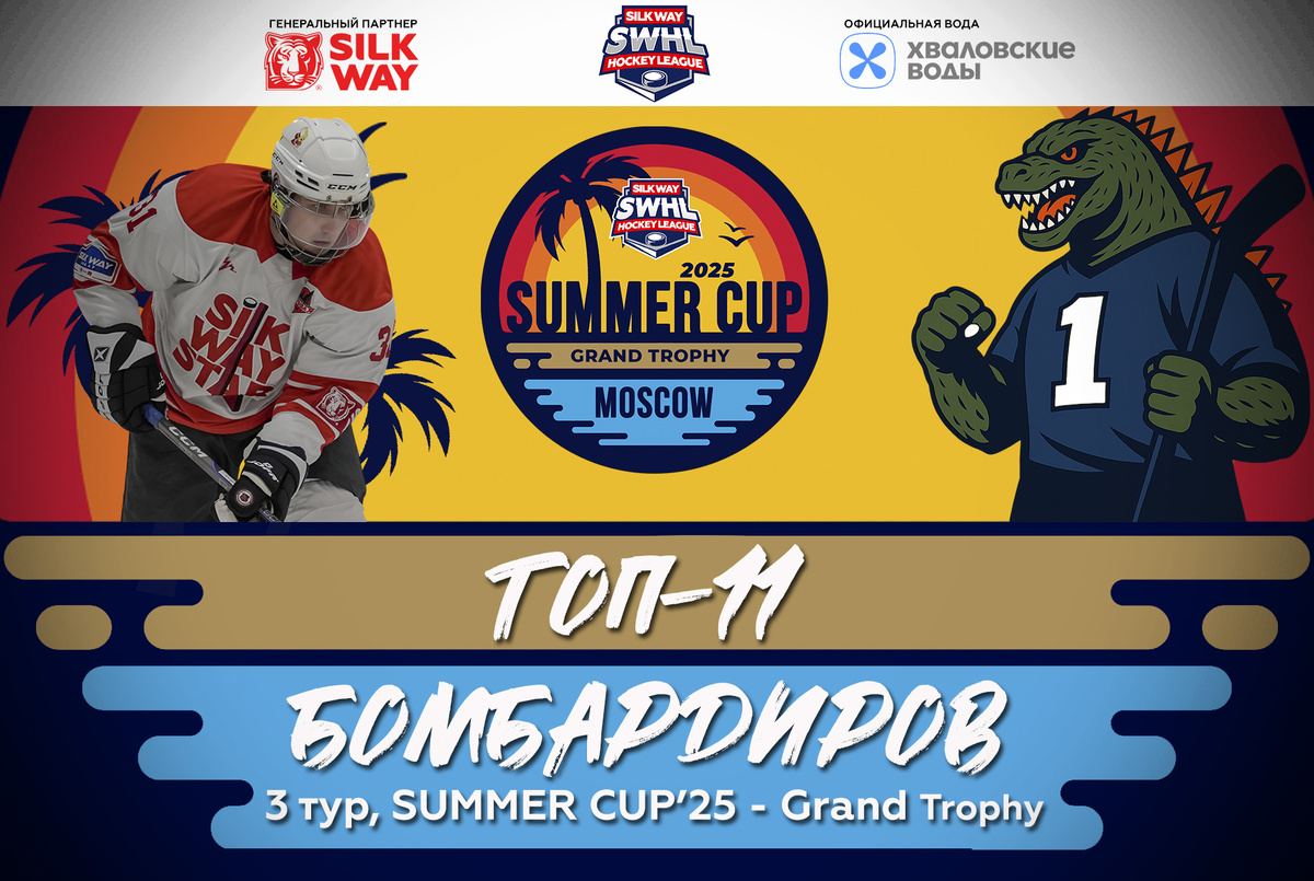 ТОП-11 БОМБАРДИРОВ SUMMER CUP’25 — GRAND TROPHY (после 3 тура) Небо над Grand Tour раскрылось третьим туром — и полетели искры. Групповой этап завершён, лёд успел остыть, но рейтинг бомбардиров продолжает пылать. Легенды рождаются внезапно и на этот раз главный сюжет — это взлёт Михаила Волкова. В прошлом туре он едва вошёл в ТОП-11, но в третьем выдал такой матч, что его фамилия теперь на вершине: 5 очков (2+3) и заслуженное первое место. Волков — как болид, улетевший со скоростью формулы-1. Это первый, когда в этом сезоне он оказался вершине. На второй строчке — Павел Муравьёв из «Зверобоев». Его актив — 4 очка (3+1). В третьем туре он играл как раз против Silk Way Star и не набрал очков. Команда Муравьёва победила в том матче 6:2, но рейтинг — это не всегда про счёт. Это про яркость, про вклад, про хоккейный голос, который невозможно не услышать. В этой гонке Волков оказался успешнее. На третьем месте — Василий Ананьев. Он был лидером первого тура, затем пропустил два матча, но оста