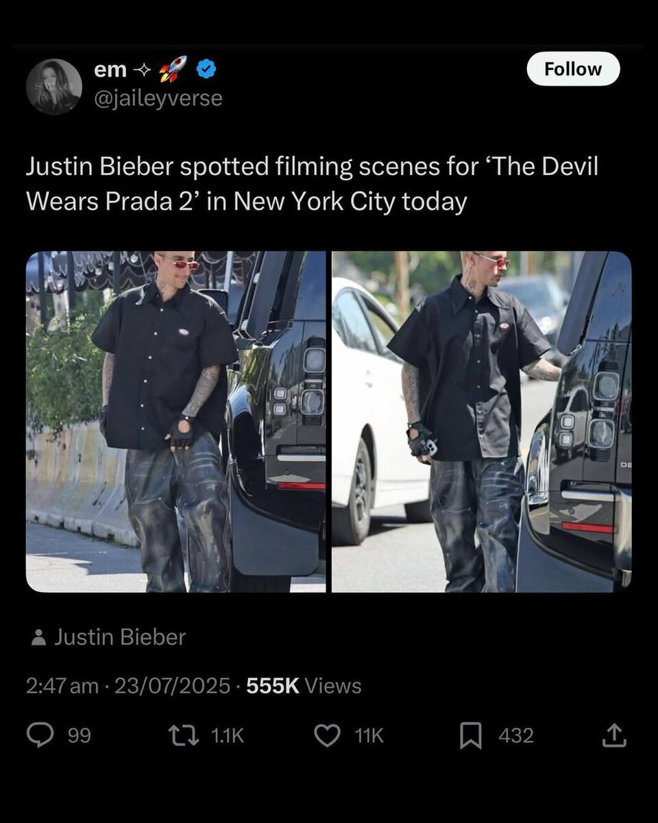 В X сегодня день фейковых новостей о касте «Дьявол носит Prada 2». Приплели всех, от Джастина Бибера и Адель до скандальной Карлы Софии Гаскон, которая к слову вписалась бы идеально. Пишут, что тренд начали продюсеры фильма, чтобы запутать фанатов и избежать утечек.