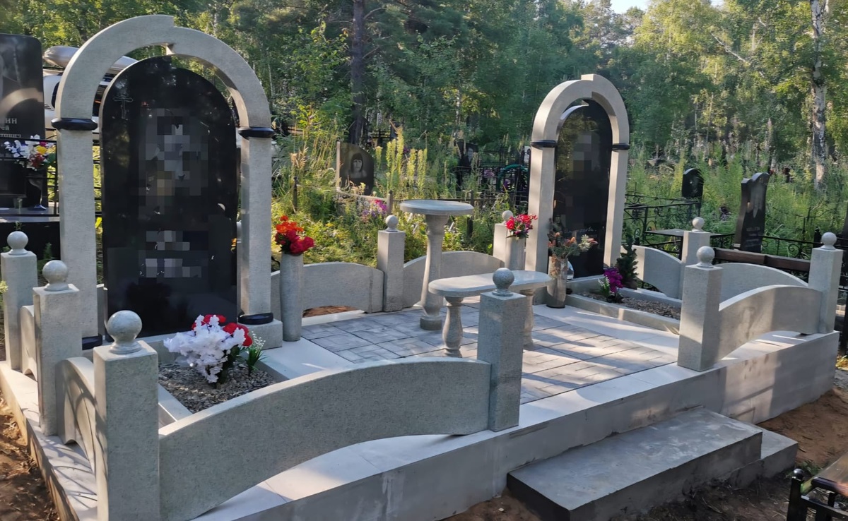 Установили элегантный двухместный мемориальный комплекс из комбинации гранитов: Габбро-диабаз + Мансуровский.
