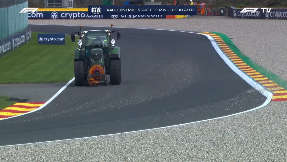 Тем временем Астон Мартин убирают гравий, который вынес на трассу Антонелли