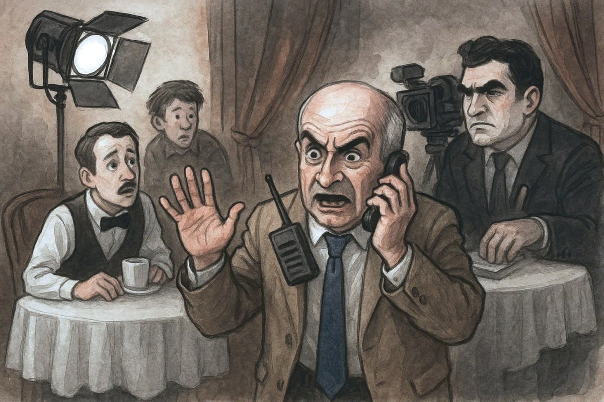 – Это – писатель. Видишь, пишет и пишет, – сказал официант коллеге, наблюдая, как за столиком одиноко сидел господин солидной наружности и что-то строчил в блокноте. Закончив писать, посетитель ресторана попросил счёт, и когда перед ним легла книжечка, резко и больно схватил официанта за руку. – Помоги мне, друг, – загробным голосом произнёс он, сдвинув чёрные густые брови. – Помоги! Я не хочу причинять боль… – Я позову администратора! – испугался официант и попытался вырваться. – Нет, сядь! – приказал посетитель, выкатив безумные глаза. – Я хочу знать, что у тебя на уме! – Спасите! – крикнул официант, пугливо озираясь. – Стоп, стоп, стоп! – вдруг раздался каркающий голос. На площадку выбежал маленький, но очень энергичный человек с лысиной в полголовы. – Кого ты играешь? – заорал он, набросившись на солидного. – Э, Вениамин Арсеньевич… – растерялся актёр, который, выйдя из образа, оказался приветливым и добродушным человеком. – Ты играешь народного избранника! – крича, напомнил режисс
